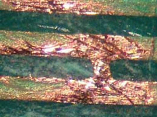 ③ OSP本身絕緣,Imidazole類OSP,形成較厚的涂覆層,會(huì)影響電氣測(cè)試,不能作為電氣接觸表面如金手指、鍵盤按鍵、測(cè)試點(diǎn)等表面的涂層。