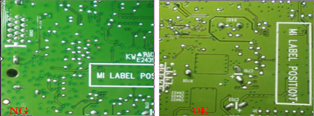 1、不良描述:量產(chǎn)715G3834-M02-000-0H4KPCB時(shí),出現(xiàn)測(cè)試點(diǎn)不上錫現(xiàn)象(紅點(diǎn)),D/C:1131